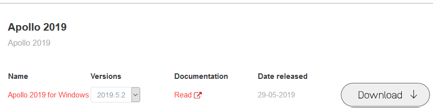 Dans l'onglet Downloads, dans la section "Apollo 2019", télécharger la dernière version d'Apollo 2019 for Windows (Apollo_2019_for_Windows_v2019.5.2.zip).
