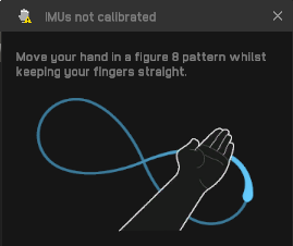 dans la vue 3D du gant, il convient de calibrer les capteurs IMU. Cette procédure est a effectuer à chaque fois que le Manus Dashboard affiche ce petit warning.