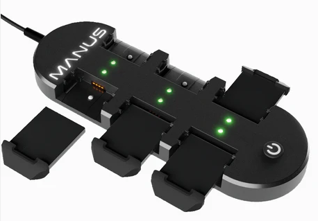 Le dongle Manus Prime X doit être connecté à l'un des ports USB-A de l'ordinateur. Le dongle à deux rôles. Il sert de licence d'utilisation et il doit être connecté à l'ordinateur pour qu'une paire des gants puisse se connecter. Il sert aussi d'antenne : il reçoit les données envoyées par les gants et les transmet à l'application Manus Core. La page correspondante du centre de connaissance Manus est Le dongle.