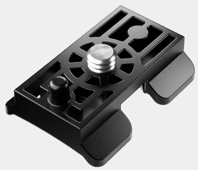 La plaque de fixation qui porte les Vive trackers peut facilement être retirée du sabot : il suffit de la faire glisser vers l'arrière. C'est une petite bille à ressort qui maintient l'ensemble. Donner une petite pression au départ, puis faire glisser jusqu'à séparation.