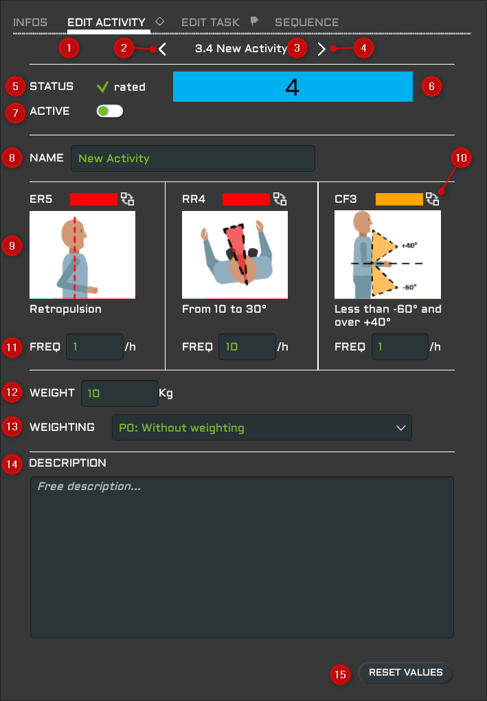 - NAME : Nom de l'activité (New Activity). Ce champ est éditable.