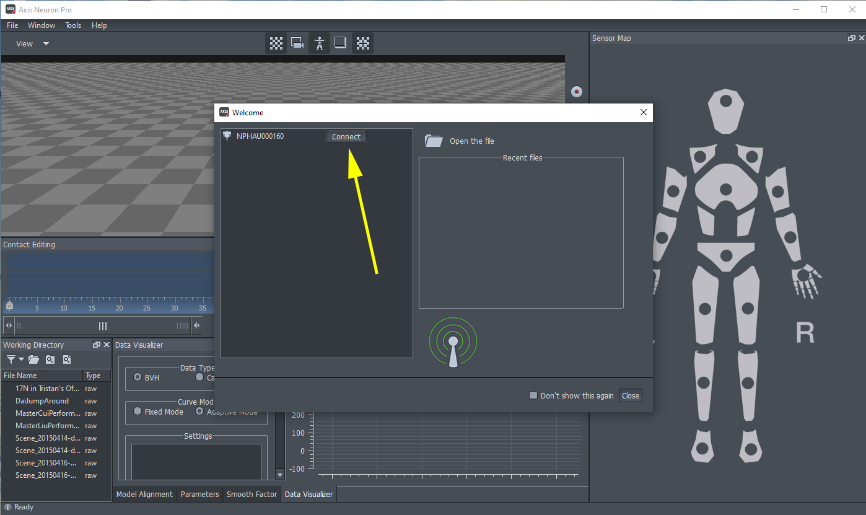 Vous pouvez passer à l'étape suivante et démarrer votre travail avec ErgoCapt. Pour cela, garder le logiciel Axis Neuron Pro ouvert et démarrer votre travail avec ErgoCapt en utilisant l'un des Player compatibles :