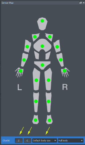 Dans la fenêtre Sensor Map, cliquer sur Default body size et choisir choisir dans la liste la taille qui correspond le mieux à l'opérateur, Female 170 par exemple.