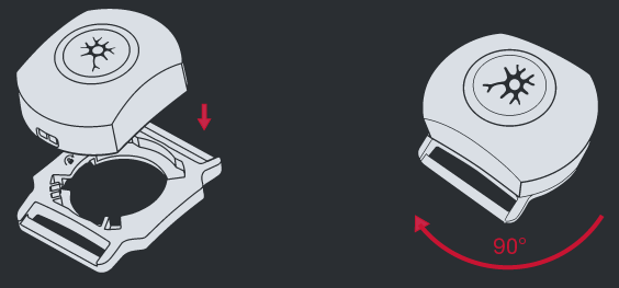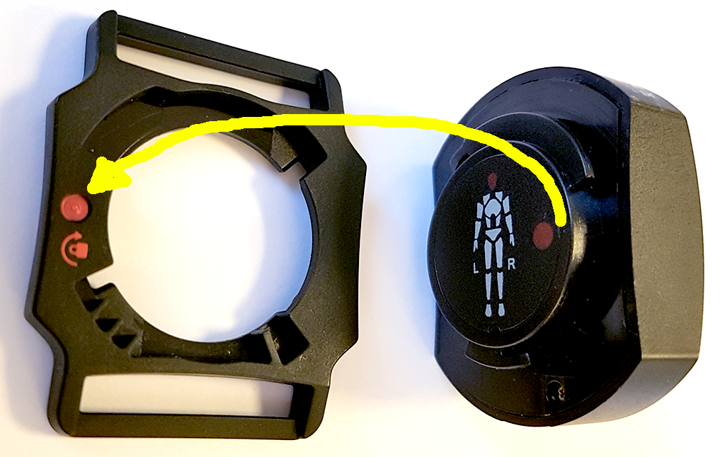 Mettre en place les capteurs sur les supports. Un schéma au dos de chaque capteur indique sur quelle partie du corps il doit être positionné. Faire correspondre les points rouges pour trouver le point d'entrée. Faites ensuite un quart de tour pour les clipser.