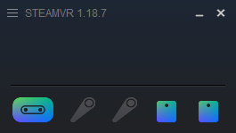 Lancer l'application SteamVR. L'interface est affichée, d'abord vide, puis, lorsque le casque et les stations de tracking sont détectées, leurs icônes respectives sont allumées en bleu.