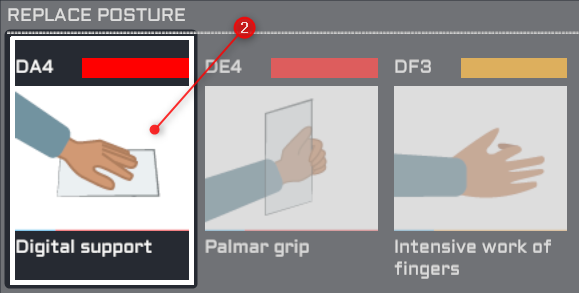 - Dans le panneau REPLACE POSTURE, sélectionner l'un des pictogrammes de remplacement. Par exemple