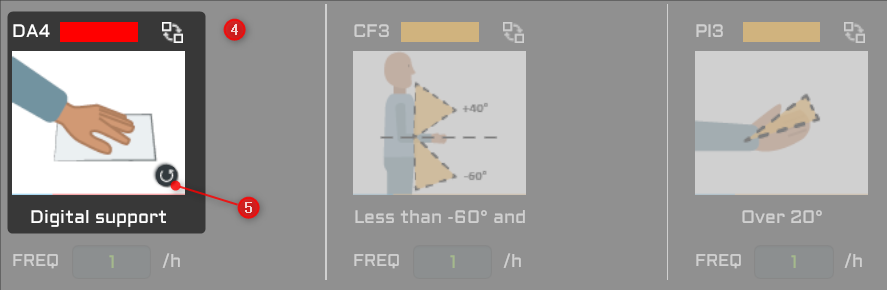 est disponible (pastille n°5 ci-dessus). Cliquer sur Reset Pictopour revenir au code posture initial (celui proposé automatiquement par ErgoCapt).